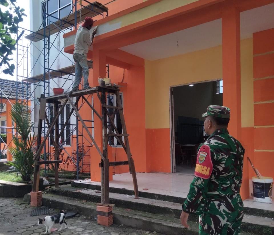 MUSI BANYUASIN (MATA RATU) Serda Hendri Wahyudi selaku Babinsa Koramil 401-03/Sekayu Penajam melaksanakan monitoring pengerjaan proyek pembangunan sekolah di SMKN Sekayu yang merupakan Program dari pe...